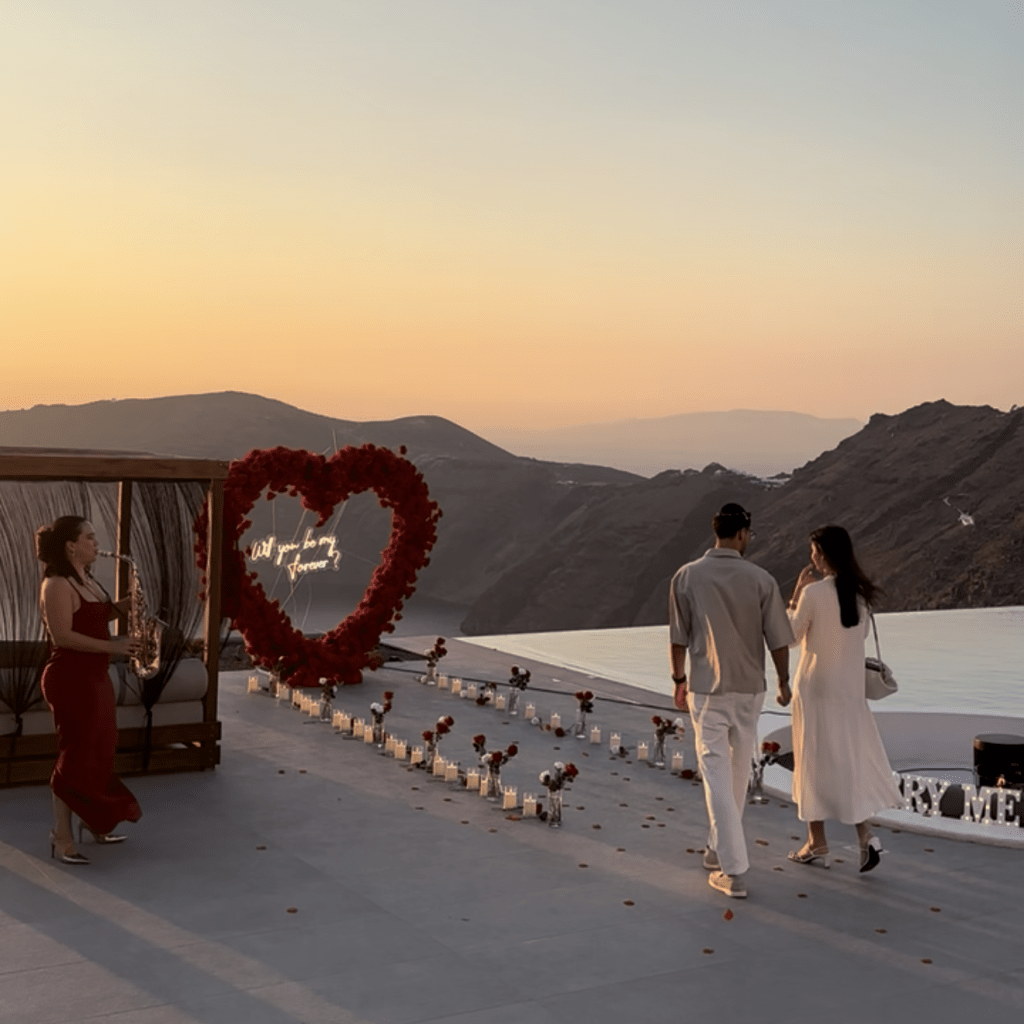 Demande en fiançailles capturée par drone au coucher du soleil, pour immortaliser ce moment précieux et inoubliable.